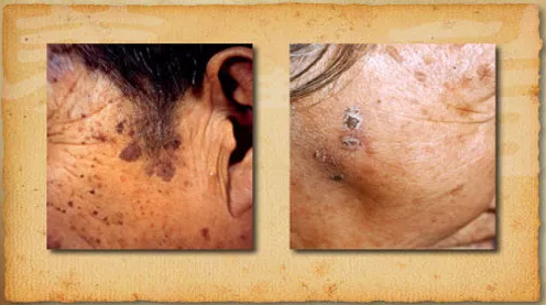 左:老年斑,右:日光性角化病 圖片來源:網絡